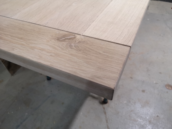 A la demande des clients de confectionner sur mesure une table en bout de meuble pour remplacer une petite table ronde.