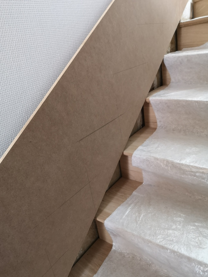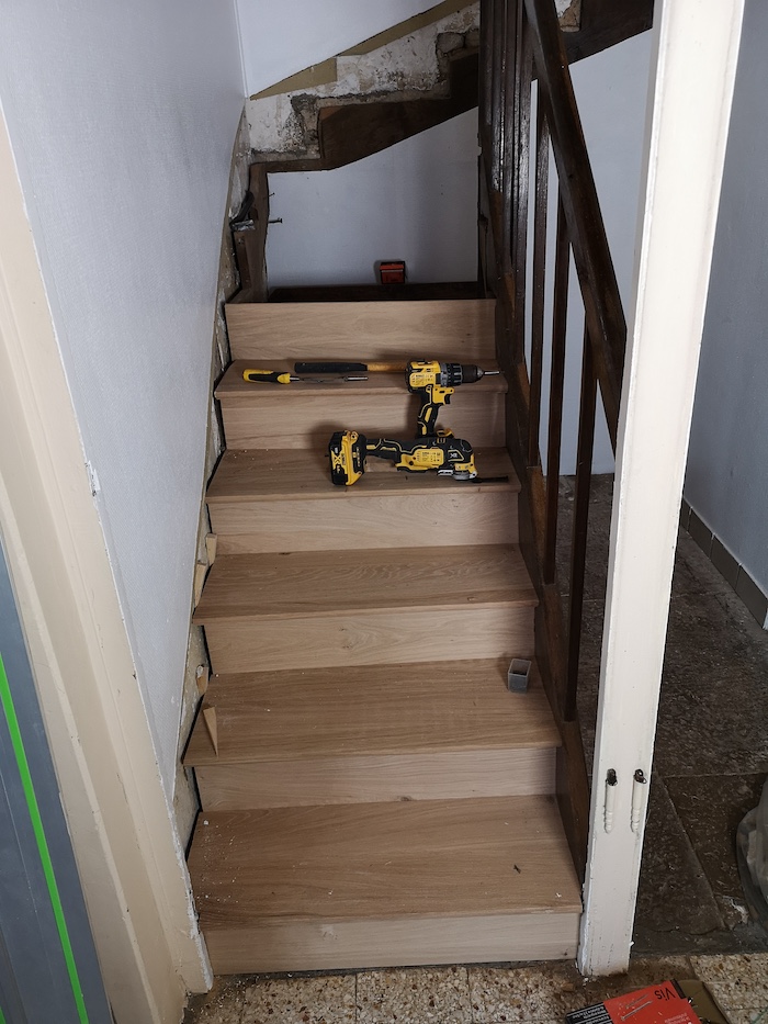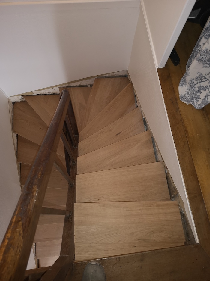 Puis ajusté sur place chaque morceau pour reconstituer l’escalier.